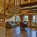Уют в апартаментах обеспечивают такие детали, как балкон и зона отдыха. Здесь устлан паркетный пол. Апартаменты оснащены биде, ванной и душем. Также предоставлены туалетные принадлежности и банные полотенца.